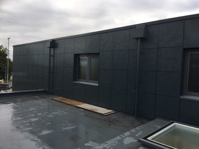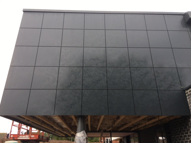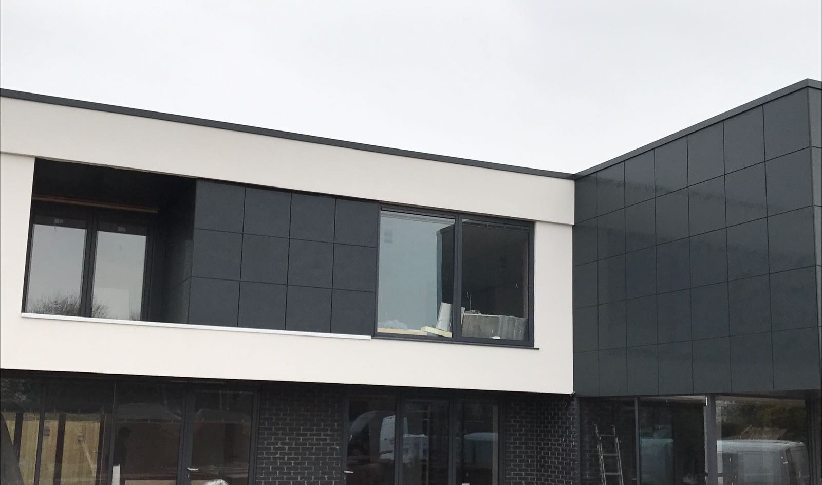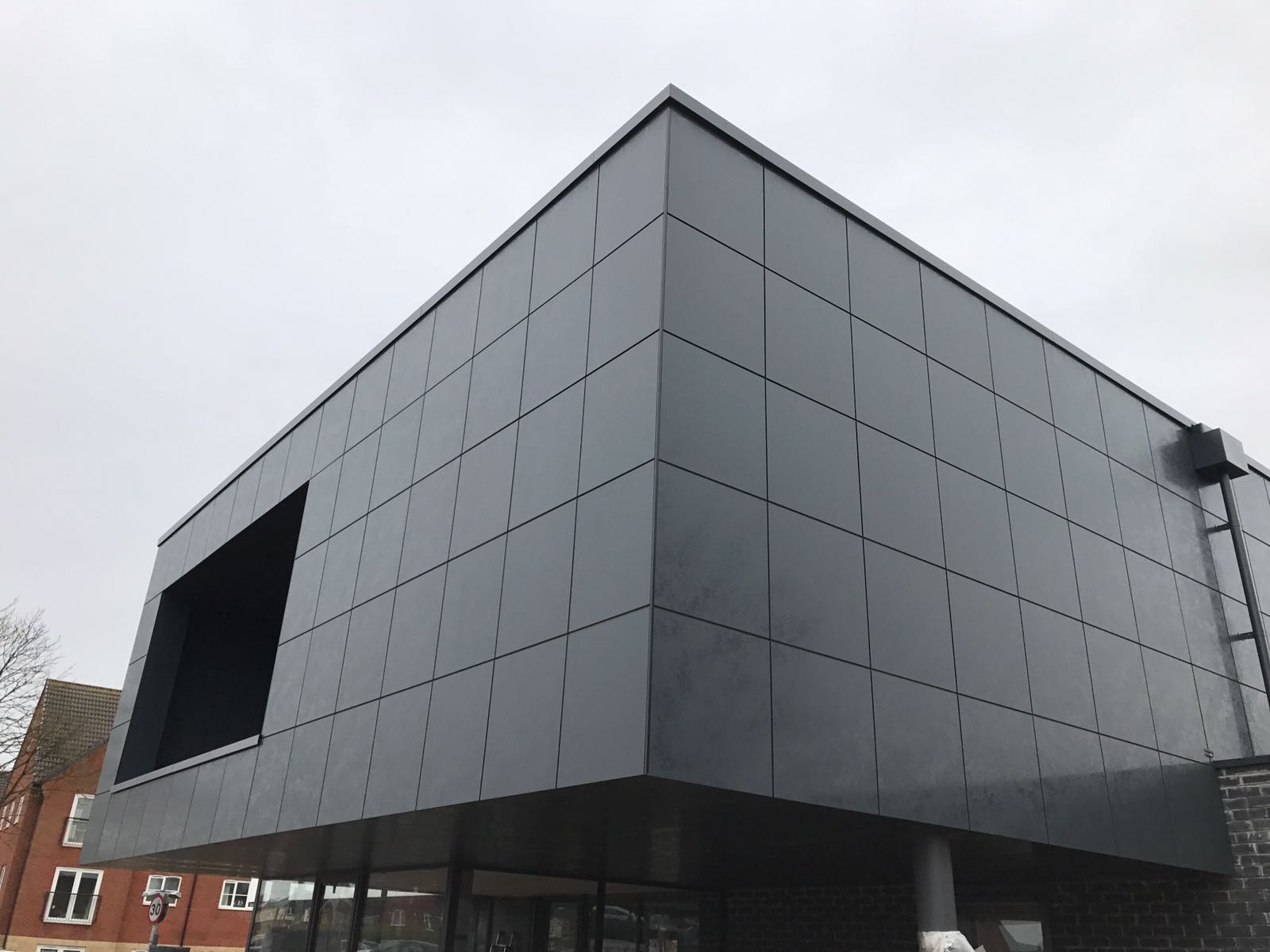 Using 400 sq.m of Trespa Lumen in New York Grey with an Oblique finish, the Mapperley project plays with natural light, adds movement and tone to the building