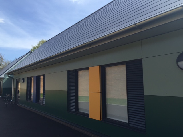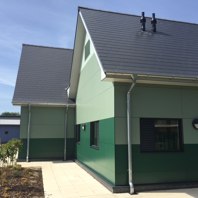The bright and colourful Northway Infant School, Tewkesbury, fabricated and supplied by BBS Facades South West uses the bright and colourful Rockpanel Rockclad and Woods ranges to engage the students. A range of Rockpanel Colours decors, and Slate Oak from the Woods range, were used across the new build school, built to replace the outdated 1950s building. Plastestrip colour matched screws completed the project without distracting from the impressive façade.